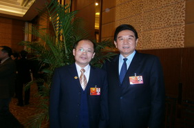 | 全国人大代表李东生校友接受《新京报》采访 | 孙大文院士与全国政协港澳台侨委员会陈云林主任合影 |