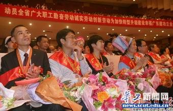 4月25日下午,广东省庆祝“五一”国际劳动节暨劳动模范表彰大会在省委礼堂举行。大会向今年受表彰的省劳动模范、先进集体和获全国五一劳动奖状、奖章、工人先锋号的个人和集体代表颁奖。