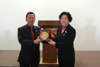 | 为新西兰校友会揭牌 | 赠送纪念品 |