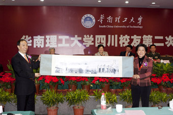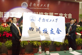 ![]() 杜小明书记代表学校向四川校友会授予会旗 | ![]() 刘琪瑾副书记代表学校向四川校友会赠送纪念品 |