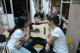 @ 08电气一班314:这是一个女生择偶的理想宿舍.除了趴在写字桌上学习和玩电脑,其他时间大都集体在举哑铃,做俯卧撑,拉臂力棒.无论篮球场和足球场.这寝室都有独当一面的任务.咋看不都是一群莽夫吗?亲!你看走眼了,他们弹吉他的时候老有魅力了.@沈洪强@曾振华 @陈晟@苏鉴湖