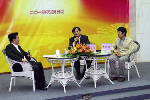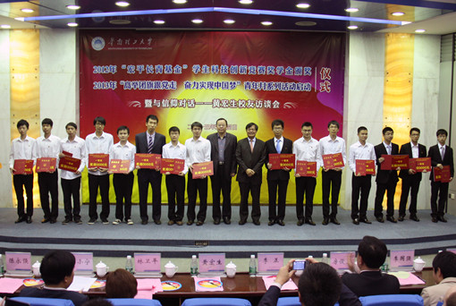 五四青年节下午,华南理工大学2012年“宏平长青基金”学生科技创新竞赛奖学金颁奖、2013年“高举团旗跟党走 奋力实现中国梦”青年月系列活动启动仪式在逸夫人文馆举行。学校杰出校友、创维集团创始人黄宏生,杰出校友、创维数码董事会主席林卫平,校长助理李正,第十五届“广东青年五四奖章”获得者、材料科学与工程学院教授李国强,相关部处学院负责人以及师生代表200余人参加活动。