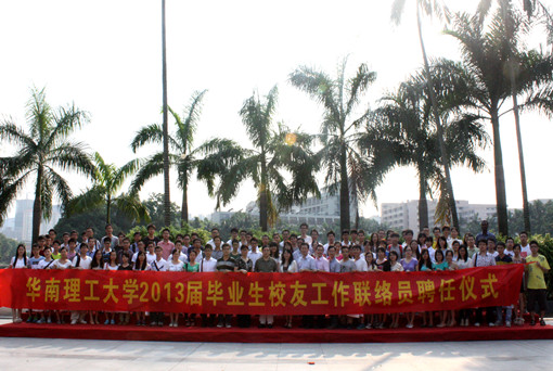 凤凰花开,芒果飘香。又是一年毕业季,满载希望和收获的喜悦,华南理工大学校友会喜迎560位校友工作联络员。6月19日下午,华南理工大学2013届毕业生校友工作联络员聘任仪式在逸夫人文馆报告厅隆重举行。华南理工大学校友会名誉会长、原学校党委书记刘树道,公共关系处处长、校友会秘书长陈艳,党委研究生工作部部长施亚玲、学生工作处副处长、学生就业指导中心副主任雷育胜、校团委副书记李卫青、公共关系处副处长、校友会秘书处副秘书长许中华、麦冬宁以及各学院辅导员老师及200余名联络员代表参加本次活动。