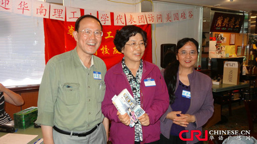 聚会中,中国驻旧金山总领事馆徐永吉参赞致辞。随后,林仕校友发表了热情洋溢的讲话,对母校访问团的到访表示热烈欢迎,表达了他对母校的怀念与感恩之情。刘琪瑾副书记向校友们致以亲切的问候,并介绍了母校近期的发展和长远规划,希望广大在美校友继续支持和关注母校的发展。聚会现场气氛热情而高涨,美国校友会理事石益坚、黄志斌校友高歌的一曲《友谊之光》,将现场气氛推向了高潮。刘琪瑾副书记一行18人向校友们献唱了《华工之歌》,优美抒情的旋律,深深感染了在座的每一位校友。