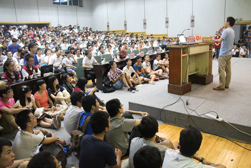 短袖T恤、米色长裤搭配休闲鞋……9月16日晚上7时许,华南理工大学2010级毕业生、26岁的陈第一身学生打扮,现身华南理工大学逸夫科学馆,开启“首届广州青年文化创意创业大赛创业训练营——‘名师大讲堂’创业巡讲”首场讲座。