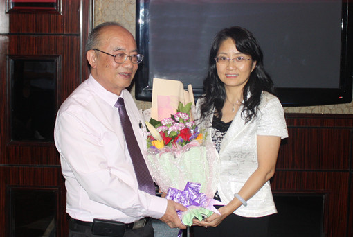 ![]() 基金会秘书长陈艳向王杏生校友献花 | |