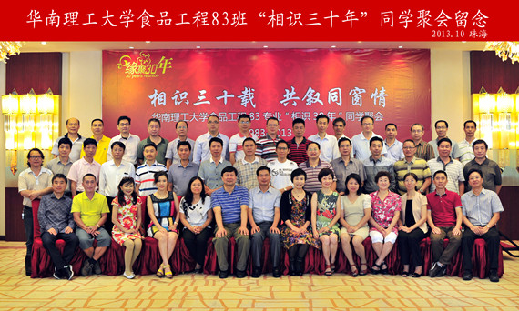 ![]() 2013年10月,食品83级同学相识30年珠海聚会合影 |