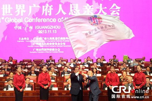 ![]() 第二届世界广府人恳请大会由广东省珠海市主办(图为授旗仪式) |