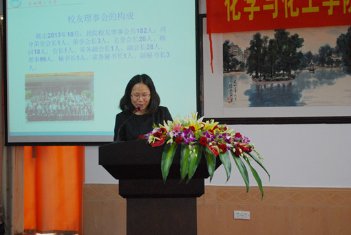 校友理事会常务副会长、化学与化工学院党委书记徐兵作了校友会工作报告。报告总结了校友会近一年来的工作情况,提出了校友会下一步的工作设想,并对化学与化工大楼的建设及资金募集情况作了介绍及捐资动员。她表示,校友会将始终以校友为主体,本着真诚为校友服务的理念,以感情为纽带、以沟通为基础、以活动为载体、以事业发展为共同目标,在广大校友之间、校友和母校之间、地方和学校之间建立紧密联系,促进服务校友、建设地方和繁荣母校的各项工作,推动学校、校友、社会三位一体的共同发展、共同进步,共同谱写华南理工大学化学与化工学院发展的新篇章!
