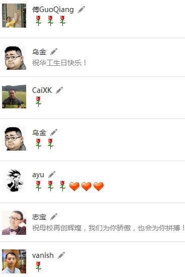 (微信用户) 志宝 :祝母校再创辉煌,我们为你骄傲,也会为你拼搏!