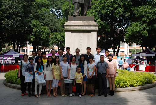 ![]() 校友在中山像前合影 |