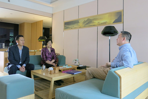 ![]() 报告会前校党委副书记刘琪瑾与沈晖校友亲切交谈 |