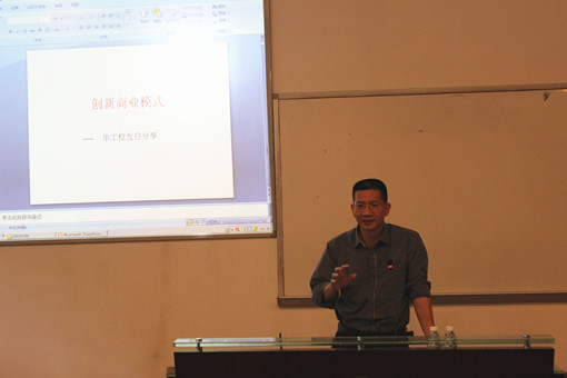 2013年11月9日校友返校日之际,校友们在返校聚会之余不忘回到课堂学习,于12号楼110室参加“创新商业模式”与“政府科技经费申报实务”创业主题讲座。创业教育学院副院长刘志超教授、校友会副秘书长麦冬宁、广州海汇投资管理有限公司投资总监楼新平、广东省科学技术情报研究所科技情报研究员、高级工程师黄国涛及其他具有创业热情的30余位校友齐聚一堂,共同探讨创业之道。