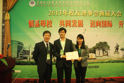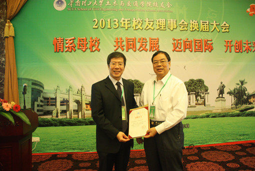 会上还举行了土木与交通学院校友会会徽LOGO启用暨校友会会徽LOGO设计创作大赛第一名颁奖仪式;苏成院长向校友颁发捐赠证书。