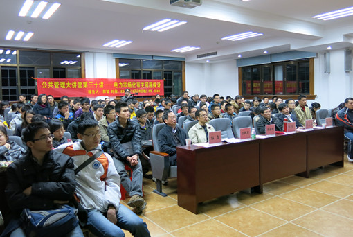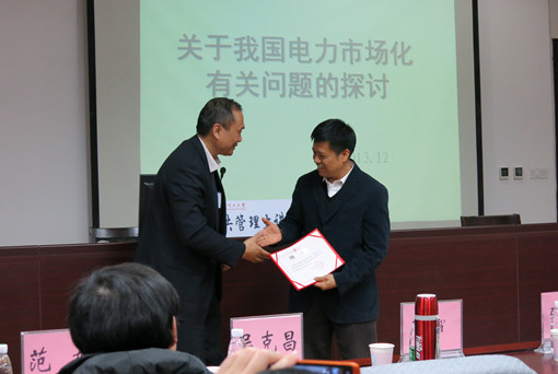 仪式结束后,郭智为MPA同学作了一场题为“我国电力市场化有关问题探讨”的报告。他从十八大以来中国社会发展的宏观背景、趋势以及我国能源自然格局、发展历史,进入到当前电力能源领域发展的两大机制进行分析,用翔实的数据、生动的案例以及对比国外相应的做法,为师生们深入浅出地阐释了我国电力市场化存在的问题和发展趋势。报告结束后,MPA同学还分别从普通居民、电力专业管理、国家公共治理等角度,与郭智进行了交流。现场师生表示,报告会不仅加深了自己对我国电力市场发展的了解,也启发自己对发展中国家与市场这个大命题进行深入思考。