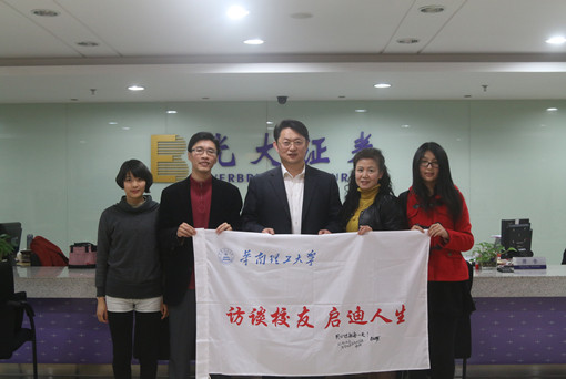 2014年3月6日,校友会副秘书长周红玲老师与学生记者一行4人前往深圳,拜访了光大证券深圳海德二路证券经营部总经理、我校96级材料科学与工程学院高分子专业罗治国校友。