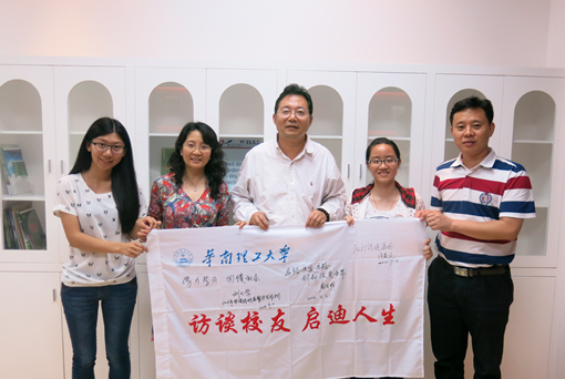 周治明校友首先带领校友会一行参观了海聚高分子材料科技(广州)有限公司,随后与师生分享了他在华工的学习生活、旅美经历、专利研发和创业历程,并就环保、创新、创业等一系列问题发表了自己的看法。