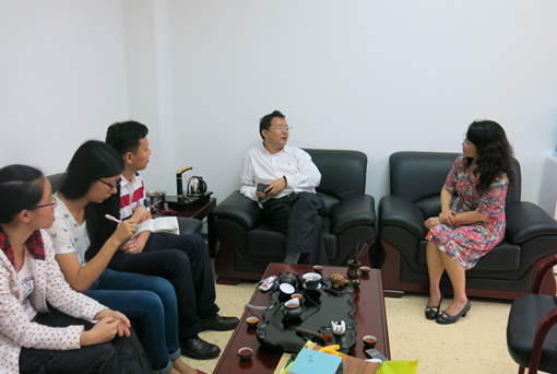 2014年4月21日下午,校友会秘书处秘书长陈艳、副秘书长许中华同学生记者一行5人前往广州科学城,与海聚高分子材料科技(广州)有限公司董事长周治明校友进行交流访谈。