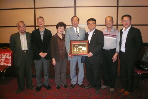 ![]() 青岛校友会副会长冯耀材(左四)与珠海校友会合影 |