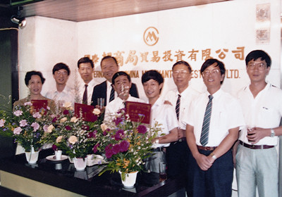 ![]() 1987年,中集重组为三方合资公司,麦伯良(右四)与同事在招商局总部留影 |
