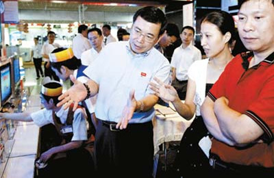 ![]() 李东生给顾客讲解推销产品 |