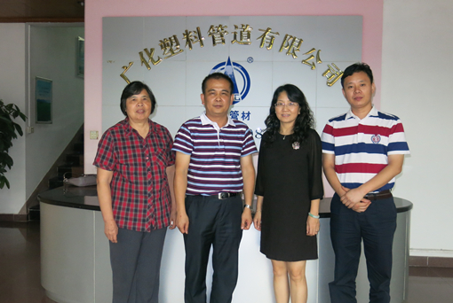 2014年7月10日下午,华南理工大学校友会、基金会秘书长陈艳、副秘书长许中华以及校友会顾问杨爱云等一行4人前往广州番禺,拜访了广化塑料管道有限公司董事总经理、我校86级高分子材料加工机械专业林明松校友。