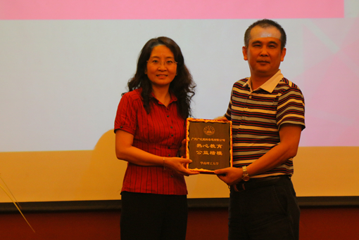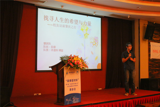 表彰分享会上,首先播放了由学生记者制作的活动回顾视频,随后,杭州队、肇庆队和云南队学生代表分别与大家分享了参加暑期访谈活动的心得、体会、收获和感悟以及访谈过程中感受到的校友对母校的热爱和作为一名“华工人”的自豪。广州广化塑料管道有限公司董事长林明松校友和校友会秘书长、校友工作处处长陈艳为获得学校“2014年暑期社会实践先进个人”的学生记者颁奖。