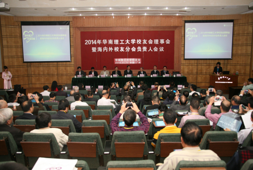 2014年11月15日,我校2014年校友理事会暨海内外校友分会负责人会议在五山校区举行,学校党委书记、校友会荣誉会长杜小明,常务副校长、校友会副会长彭新一,党委副书记余其俊出席活动。我校校友会顾问、原广东省人大常委会副主任陈坚,老领导庞正、刘正义、刘焕彬、刘树道、李伯天、曾惠典、黄石生、陈维英、陈铁群,学校党委常委陶韶菁,学校相关部处负责人以及200余名海内外校友参加会议。会议由学校党委副书记、纪委书记、校友会常务副会长刘琪瑾主持。