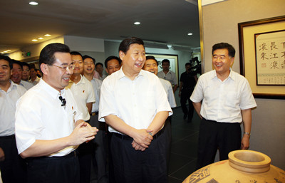 ![]() 2008年7月4日,时任中共中央政治局常委、中央书记处书记、国家副主席习近平,在时任中共中央政治局委员、广东省委书记汪洋,省长黄华华陪同下,视察唯美公司 |