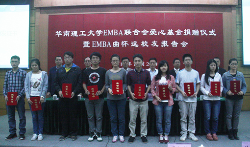 据悉,华南理工大学EMBA联合会于2008年成立,并于同年创建了华南理工大学EMBA教育基金,教育基金的资金优先向在校家庭经济困难学生以及学科尖子生发放。2014年,EMBA联合会出资39.6万元按照每人3000元的资助标准资助132名家庭经济困难学生,在帮助更多的家庭经济困难学生和优秀学生的同时,建立学校与各校友企业的就业互动机制,为华南理工学子创造更多的就业机会。(图文/学生工作部(处)编辑/许颖)