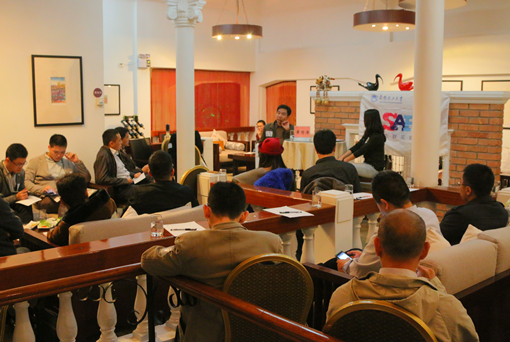活动正式开始前,校友们早早来到现场,相互添加微信好友、下载校友会APP、介绍个人创业方向和项目,彼此间的热情交流带动现场迅速升温。在简短的开场白后,晚餐会正式开始。黄国涛校友首先从广东省科技企业孵化器协会基本情况、政府对创业支持、科技企业孵化器对创业者服务支持体系等三个方面进行了介绍。他提到,省科技孵化器协会目前已有70家左右的会员,协会主要提供基础服务例如办公场地以吸引企业入驻,并提供投融资和技术服务等。关于政府对创业的支持,黄国涛校友重点介绍了国家设立的50万-100万技术创新基金以及展翔计划和领航计划等政策。此外,黄国涛校友还列举了一些创业的热门方向,如移动互联网、移动医疗、计算机与通讯芯片大型与小型化、新型印刷显示器和新能源汽车等。“掌门人”的分享结束后,校友们纷纷举手提问,现场气氛愈加高涨。