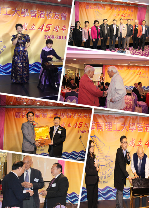 2014年12月7日,香港校友会成立45周年庆典在港隆重举行,学校党委副书记、纪委书记、校友会常务副会长刘琪瑾,老领导刘正义、刘焕彬、刘树道,校友会秘书长陈艳、副秘书长麦冬宁等一行7人赴港参加了庆典活动,与逾二百在港校友欢聚一堂,共同庆祝和见证这一激动和喜悦的时刻。我校澳门校友会、南加州校友会、深圳校友会、四川校友会、珠海校友会、东莞校友会、中山校友会、梅州校友会等10余个兄弟校友会负责人到场祝贺。新加坡校友会、法国校友会、澳大利亚校友会、北京校友会、浙江校友会等21个海内外校友分会纷纷发贺信贺电表示祝贺。
