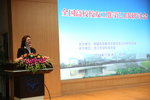 2014年12月18日,由中国高等教育学会校友工作研究分会主办、浙江大学校友总会承办的全国高校校友工作第21次研讨会在浙江大学顺利召开。中国高等教育学会办公室主任沙玉梅,中国高等教育学会校友工作研究分会会长、浙江大学校长林建华等和来自全国264所高校的360余位代表出席此次研讨会,共同探讨新形势下的校友工作。我校校友工作处副处长、校友会副秘书长麦冬宁参加了研讨会和17日下午举行的常务理事会议。