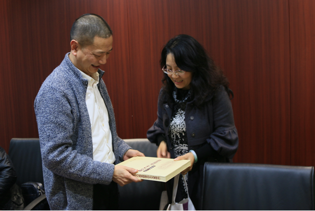 陈艳秘书长向张帆校友赠送学校刊物