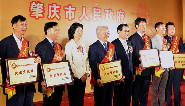 ![]() 张弢校友(左四)出席肇庆市金秋经贸会颁奖仪式 |
