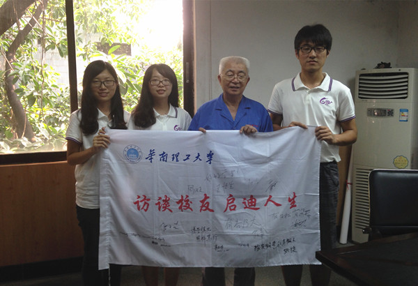 ![]() 张弢校友(右二)与学生记者合影 |