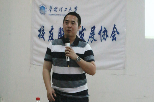 协会指导老师秦鹏介绍了校友会和基金会的情况,重点介绍了校友会在海内外的分布情况、校友会微博、微信、APP等宣传平台、校友返校日、SAF2华工校友群英晚餐会,为爱发声等品牌校友活动和各类校友服务项目。