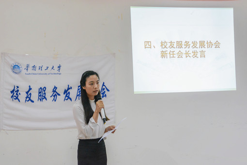 其后,新任会长潘晓梦同学代表协会发言,她希望加强和各兄弟协会之间的联系、交流及合作,也希望更多乐于服务、甘于奉献、渴望突破自我的在校学生参与到校友服务发展协会的大家庭。接着,各友好协会代表纷纷发言,表达对校友服务发展协会换届的祝贺,也期待加强和校友服务发展协会的合作与交流,为同学们多举办有益的活动。