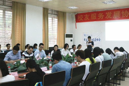 2015年4月25日下午,华南理工大学校友服务发展协会换届大会在五山校区1号楼1105会议室召开。校友工作处副处长、校友会副秘书长麦冬宁,校团委副书记梁劲,校友服务发展协会会员以及社团联合会、微博协会、8+社团协会、民营企业文化协会等友好协会代表共46人参加了活动。