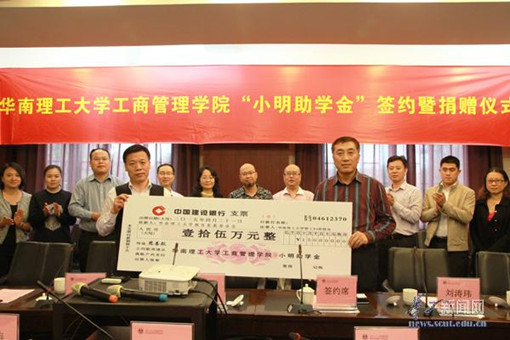 2015年4月21日,“小明助学金”签约暨捐赠仪式在五山校区12号楼举行,学校华南理工大学教育发展基金会、工商管理学院相关负责人,以及管理工程系83级校友代表参加活动。