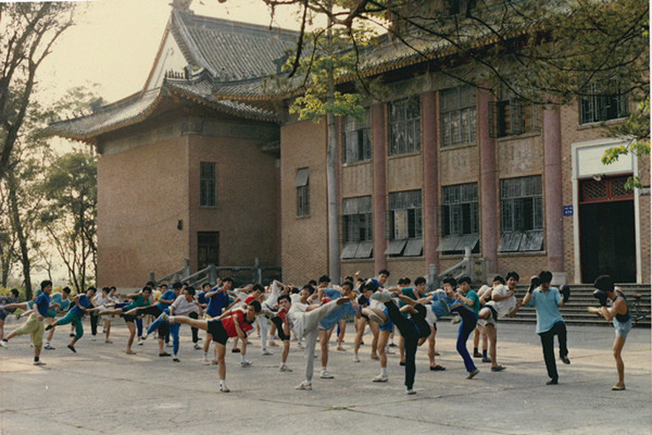 ![]() 梁旭辉带领武协会员们在法学院楼前进行训练,摄于1991年 |