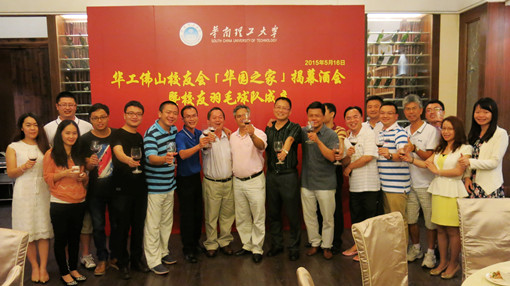 2015年5月16日晚上,佛山校友会“华园之家”揭幕酒会暨校友羽毛球队成立仪式在佛山南海区举行。佛山校友会会长、中南机械有限公司董事长许冠、佛山校友会秘书长、佛山市生活无限传媒有限公司总经理冯云、新明珠地产董事何舜、佛山润汉房地产开发有限公司董事长陈柱湛、工商银行佛山北窖支行行长徐冠咏等近七十余位校友欢聚“华园之家”,畅叙华园情。江门校友会代表张銮、夏均超、卓兆群、范伟阳4人应邀前来,与佛山校友会交流学习,共促校友会的发展和建设。校友会秘书长陈艳、副秘书长麦冬宁一行四人参加本次活动,与校友们充分交流。