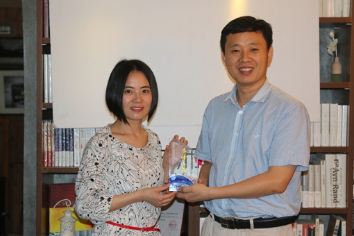 许中华副秘书长向谷小容女士赠送纪念水晶