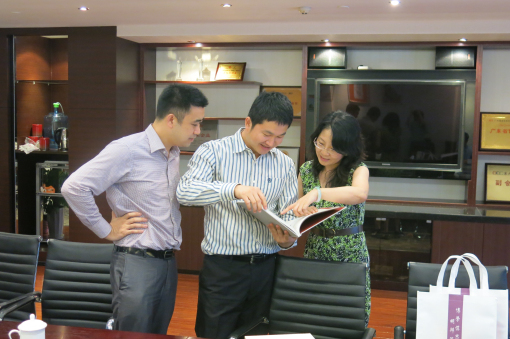 2015年5月27日,我校校友会秘书长陈艳、副秘书长周红玲,广咨国际工程投资顾问(集团)有限公司董事长蒋主浮校友等一行6人前往广州德高信集团,拜访公司董事长、我校1998级建筑工程专业陈维靖校友,公司项目总经理、我校1998级建筑工程专业郑卓雄校友。