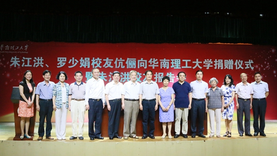 6月18日,朱江洪、罗少娟校友伉俪向华南理工大学捐赠签约仪式在励吾科技楼国际会议厅举行。华工65级杰出校友、原格力集团董事长朱江洪、罗少娟校友伉俪慷慨捐资六百万,支持母校教育事业的不断发展,培养更多好学上进的年轻学子。