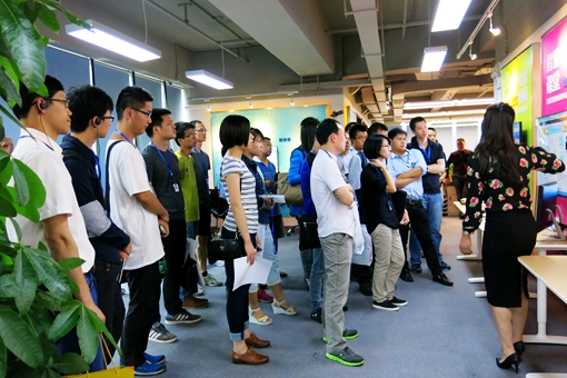 在全通教育众创空间CEO崔勇先生的带领介绍下,华工校友们一同参观了解了全通众创空间的办公环境、空间布局以及功能划分。在全通工作人员的带领讲解下,华工校友一行参观了位于全通总部的产品演示中心,了解了产品团队以及智阅卷-学业评估、动力加-智能校园、全课云-智慧课堂、家校互联等在线教育产品。