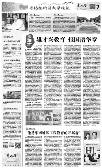 梅州日报7月8日第7版整版报道 “萧萧风雨夜,砥柱迸中流。鄙视滥竽客,甘当孺子牛。弦歌传海外,桃李遍神州。为树百年计,人休志不休。”上世纪九十年代初,省民盟原副主委叶春送给罗雄才的这首诗,恰是罗雄才一生的写照。日前,本报采访组前往广州,探寻罗雄才六十多年从事教育工作的传奇人生。