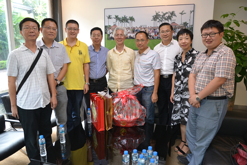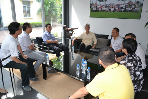 2015年9月25日中秋节来临之际,继续教育学院党委书记张锅红、校友服务中心相关老师、继续教育学院广州校友会秘书长王海荣以及建筑学院校友代表一同拜访了何镜堂院士。