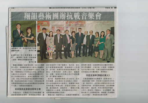 由香港翔韵艺术团主办的“且行且珍惜——纪念抗战胜利七十周年音乐会”8月31日晚在香港大会堂音乐厅举行,我校艺术学院声乐系吴国玲老师、轻工与食品学院李蓝波校友分别担任该艺术团艺术总监和团长。