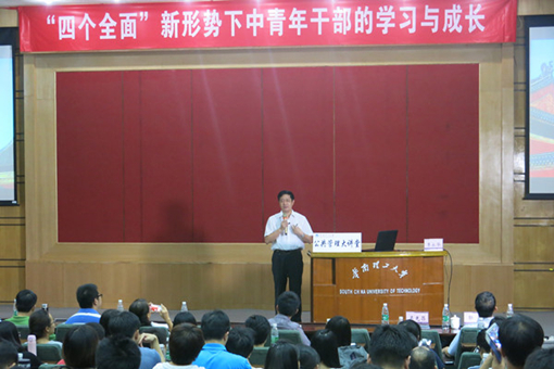 李永华校友以学者的视角,系统而全面地讲解了“四个全面”的内涵与中国梦的关系,四个全面的逻辑关系及其价值,其中不乏独到的见解。他结合中华民族伟大复兴的中国梦,为师生们介绍了“四个全面” 构建引领民族复兴的战略布局。随后,李永华以校友和“大师兄”的身份与在座的师弟师妹们分享了“我是如何度过大学时光”的,并向同学们提出学习和生活方面的建议。他还以管理干部“过来人”的身份分享了自己锻炼成长的过程,鼓励同学们提高自身的素养和能力,做一个格局大、心态好的人。